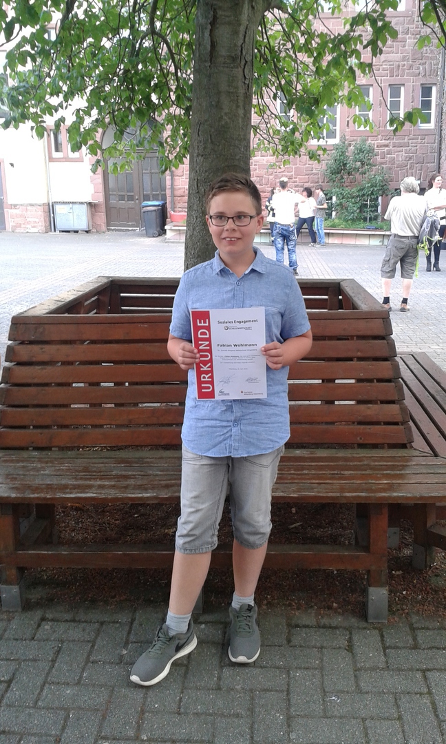 Am Montag, den 11. Juni 2018 wurde Fabian Wohlmann in der Mittelschule Miltenberg bei der Veranstaltung zur „Anerkennung von sozialem Engagement von Mittelschülerinnen und Mittelschülern“ im Landkreis als sozialer Schüler geehrt.