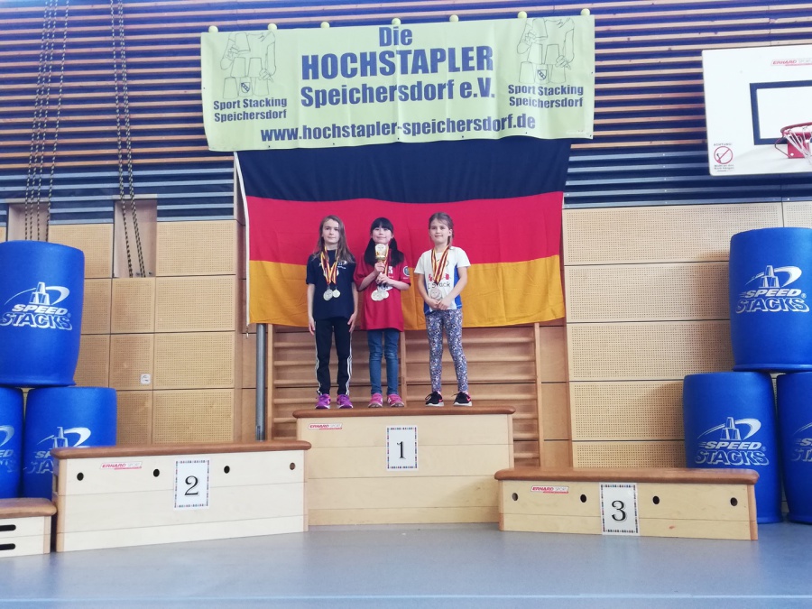 Nachdem schon in der Vergangenheit Stackerinnen aus der Dr.-Konrad-Wiegand-Schule Erfolge bei Turnieren und Meisterschaften erringen konnten (Leonie Martin, Salome Abb, Jana Martin), ist aktuell Marlene Zander aus der 4. Klasse seit dem letzten Jahr bei Turnieren der WSSA (World Sport Stacking Association) aktiv. Sie trainiert wie all ihre Vorgängerinnen bei Norbert Abb im TV Trennfurt und hat im letzten Jahr nach einem Anfängerturnier an zwei Qualifikationsturnieren für die deutsche Meisterschaft teilgenommen. Dabei hat sie sich schon 6 Medaillen verdient.