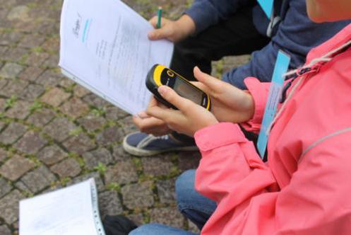 Recht schnell gelang es den Schülerinnen und Schülern, trotz kurz gehaltener Einführung, mit den neuen Geräten richtig umzugehen. So kamen nach einer Stunde alle am Spielplatz hinter der Schule an. Dort galt es ein letztes Rätsel zu lösen und die finale Koordinate ins GPS-Gerät einzugeben.