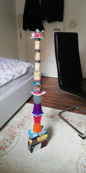 Wie kann man auch in Zeiten des Lockdowns und des Distanzunterrichts zeigen, dass man als Klasse immer noch zusammengehört? Natürlich durch ein gemeinsames Projekt! In der Woche, in der eigentlich die Faschingsferien gewesen wären, durften sich die Mittelschüler einer freiwilligen Herausforderung stellen. Jeden Tag gab es eine kleine Aufgabe, die entweder zu Hause oder an der frischen Luft, entweder alleine oder mit einem Klassenkamerad gelöst werden sollte. So war z.B. ein Auftrag, einen möglichst hohen, freistehenden Turm zu bauen. Alles, was zu Hause so zu finden war, durfte verwendet werden. Die Ergebnisse sind wirklich toll geworden…
