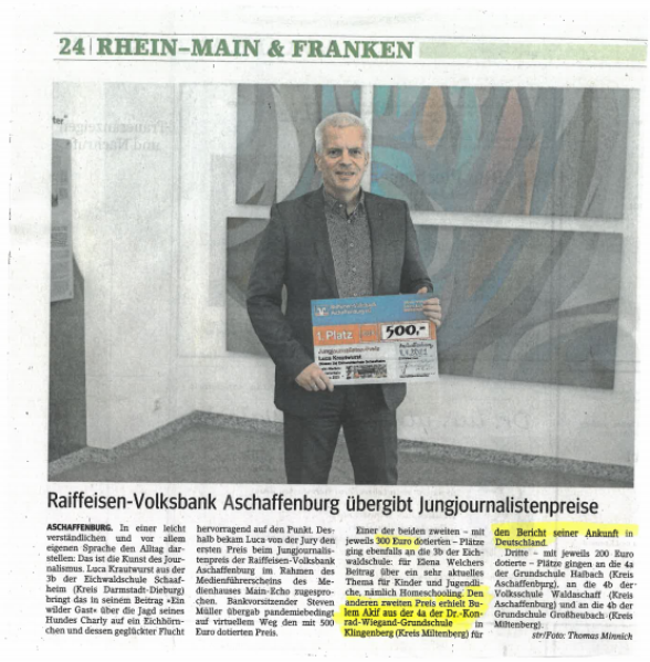Bulem Akif aus der Klasse 4a erreichte den zweiten Platz beim Jungjournalistenpreis der Raiffeisen-Volksbank Aschaffenburg SKM_C25821071308580.pdf PDF-Dokument [158.0 KB]