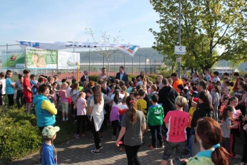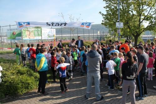 Bei strahlendem Sonnenschein eröffnete Herr Rektor Harald Scherg am 06. Mai 2016 pünktlich um 8:15 Uhr den 9. Lauftag an der Dr.-Konrad-Wiegand-Grund- und Mittelschule in Klingenberg am Main.