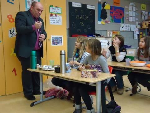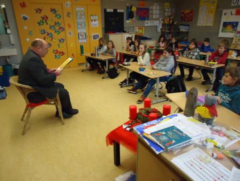 Bei unserer Weihnachtsfeier am 19.12.2013 überraschte uns der 1. Bürgermeister Herr Reichwein. Passend zum Thema “Weihnachten weltweit” las er uns die weihnachtliche Geschichte “Lilo und Latz und die neue Weihnachtskugel” vor. Danach luden wir ihn ein, unsere mitgebrachten Plätzchen zu probieren.