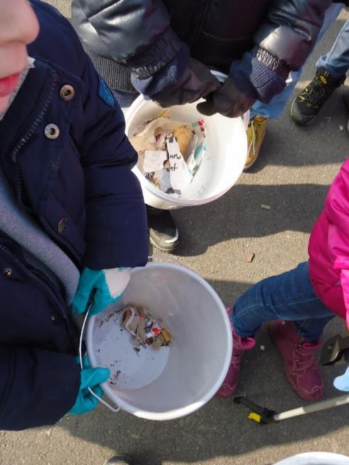 Mit Eimern, Handschuhen und Greifzangen ausgestattet, sammelten die Schülerinnen und Schüler in Teams Bonbonpapiere und Chipstüten, Nägel, leere Flaschen, ja sogar kaputte Laptopkabel.