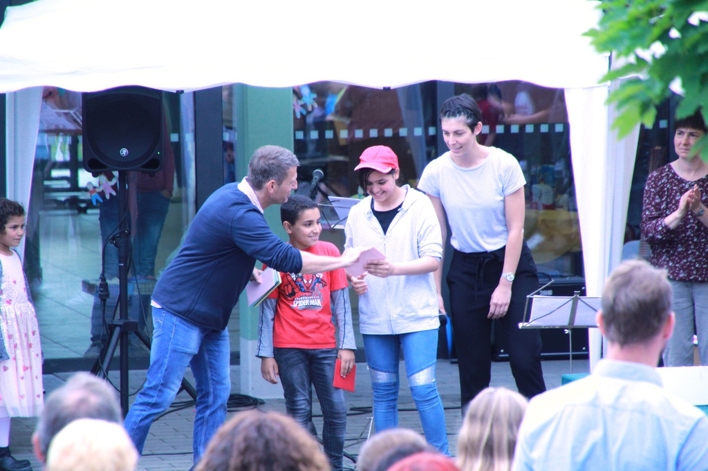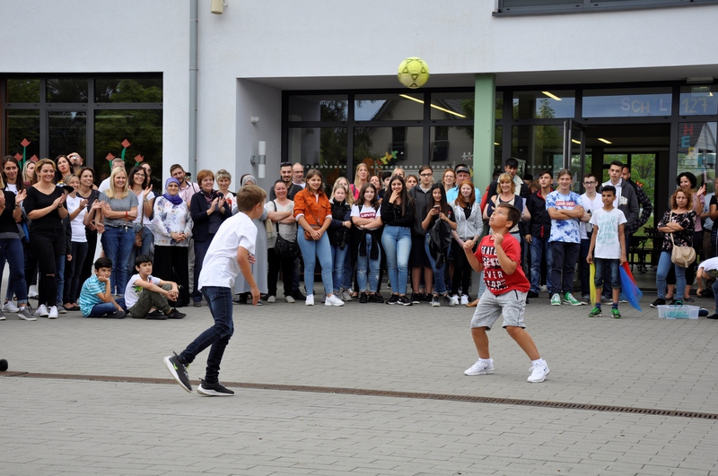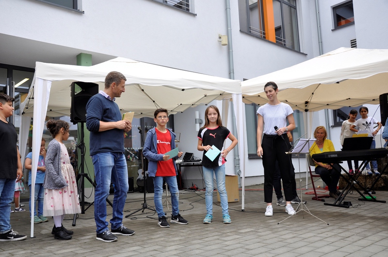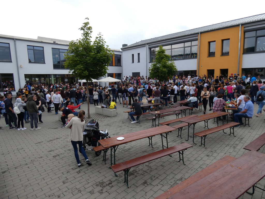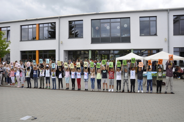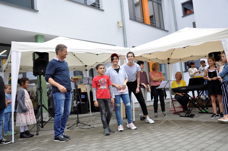 Unter diesem Motto fand am Freitag, den 12. Juli 2019 das Schulfest der Dr.-Konrad-Wiegand Grund- und Mittelschule statt. Schon beim Begrüßungslied und auch bei einem Willkommensgruß, den einzelne Schüler in verschiedenen Sprachen vorbrachten, wurde das Motto anschaulich verdeutlicht: Schüler aus mehr als 20 unterschiedlichen Nationen sind unter unserem Schuldach vereint. Dass damit Chancen, aber auch große Herausforderungen sowohl für die Lehrer wie auch die Schüler einhergehen, machte Schulleiter Michael Traut gleich zu Anfang deutlich.