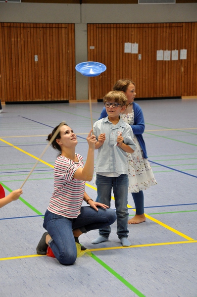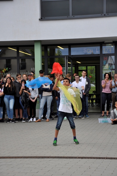 Neben dem Basteln eines Traumfängers, von Friedenstauben, Perlen-Armbändern oder Bemalen einer Stofftasche gab es reichhaltige Spieleangebote wie einen sportlichen Parcour durch die Welt, Sport-Stacking, Tischtennis, Geschicklichkeitsspiele, Jonglieren sowie einen Flohmarkt und eine kulinarische Reise nach London: Für jeden Geschmack war etwas dabei.