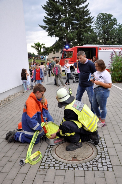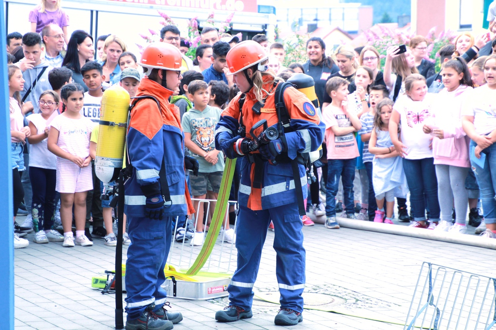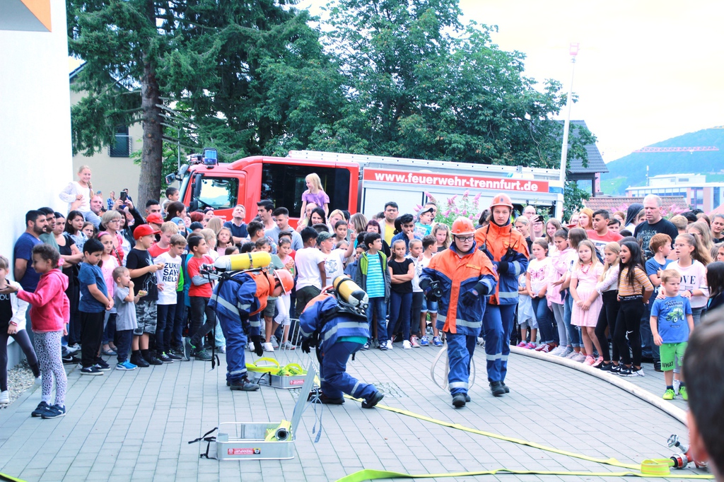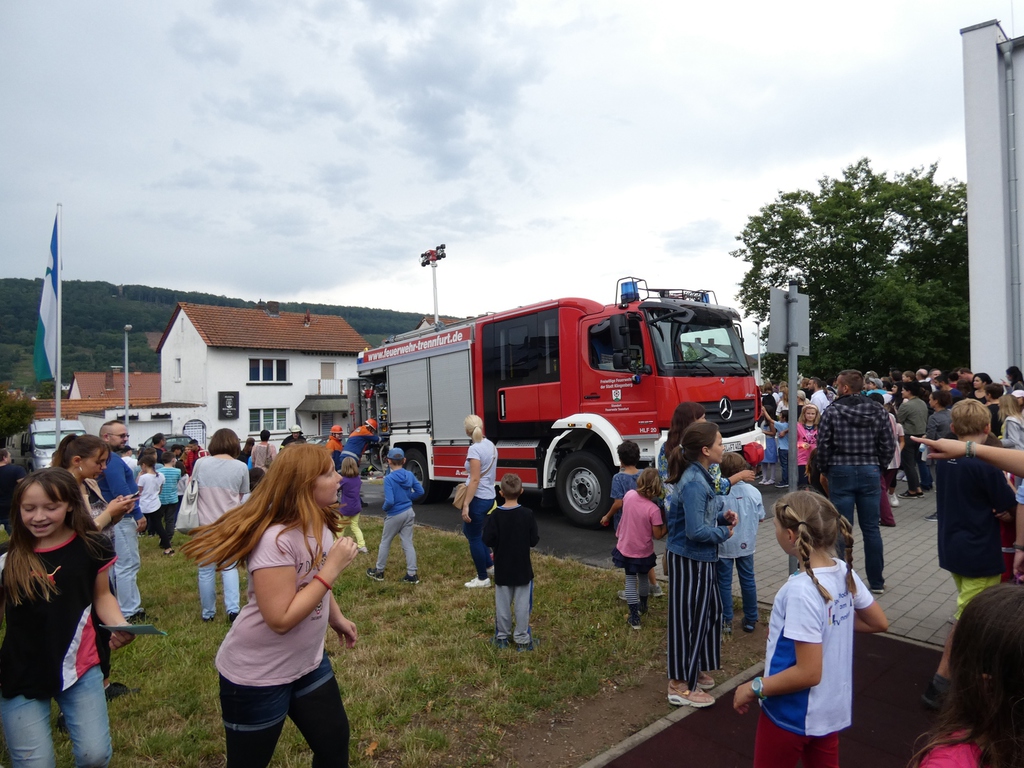 Der Elternbeirat ließ mit einem reichhaltigen Kuchenbuffet und einigen herzhaften Angeboten keine Wünsche offen. Am Schluss erfolgte noch die Ehrung der besten Läufer und Läuferinnen des Lauftages, der besten Künstlerin eines Kunstwettbewerbes und der Mitglieder der Schulband, die mit einigen dargebotenen Musikstücken das bunte Programm des Schulfestes bereicherten. Mit einer spannenden Rettungsübung der Jugendfeuerwehr Trennfurt schloss der abwechslungsreiche Nachmittag ab.