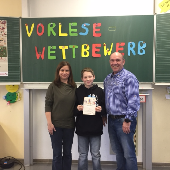 Der strahlende Sieger erhielt eine Urkunde, einen Buchgutschein und darf die die Schule beim Kreisentscheid in Miltenberg vertreten. Wir drücken ganz fest die Daumen!