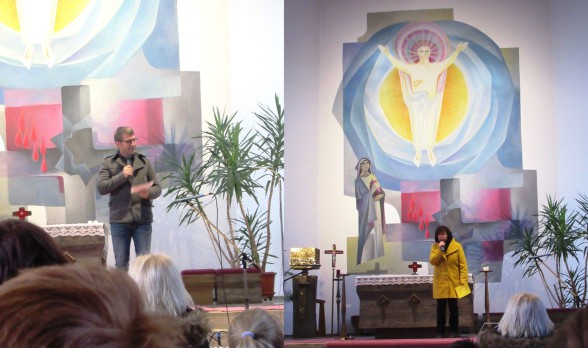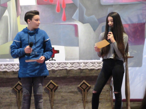 Durch das Programm des Adventskonzertes führten die beiden Schülersprecher Melike Dugru und Carlos Huth aus den 8. Klassen. Sympathisch kündigten sie die einzelnen Programmpunkte an. Unterstützt wurden sie dabei von Gemeindereferentin Gabriele Spahn-Sauer, die in ihre Ausführungen immer wieder besinnliche Gedanken einfließen ließ.